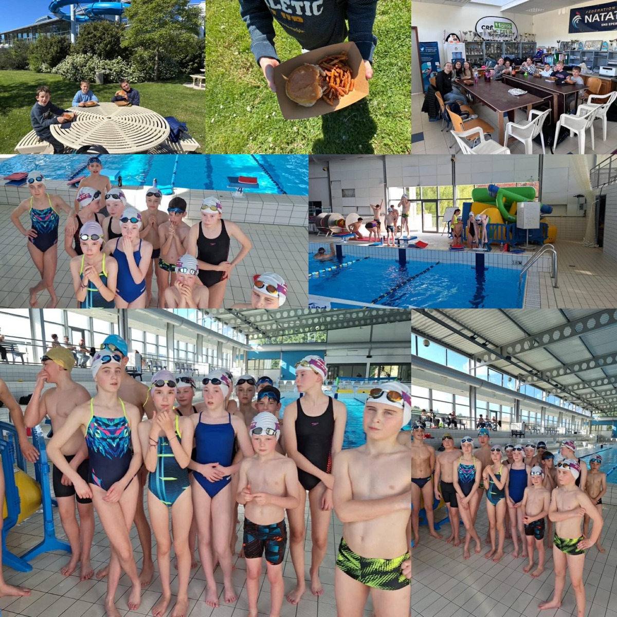 Clap de fin du stage sparnacien pour les nageurs avenirs. Au menu de ce stage : 2h de natation le matin, 1h le soir, des échauffements, des étirements, du body combat et des jeux sportifs l'après midi au Gymnase. C'était intensif mais tout le groupe a tenu bon et est prêt à entamer la dernière partie de la saison ! Quelques photos souvenir au bord de l'eau et du repas de fin de stage, financé par les bénéfices de la Tombola 2025.